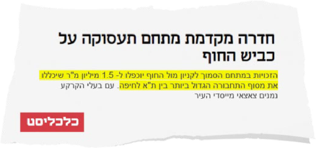 מיקום אסטרטגי צמוד לרכבת ולכביש 4